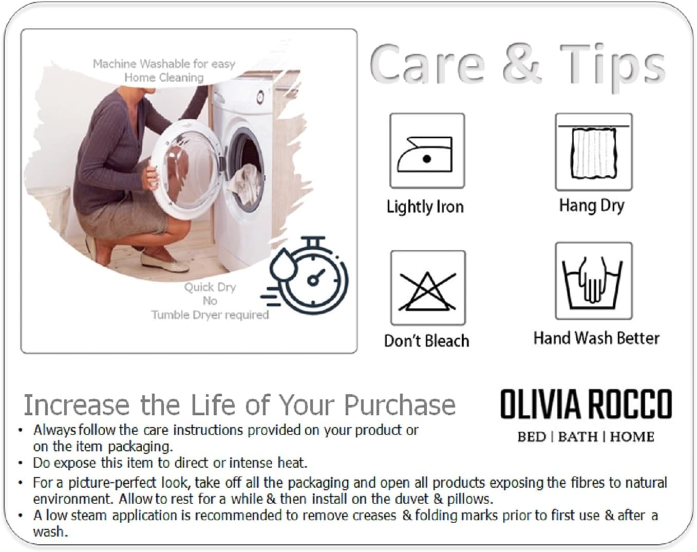 - Double: One duvet cover (200 x 200 cm) and two pillowcases (50 x 75 cm)