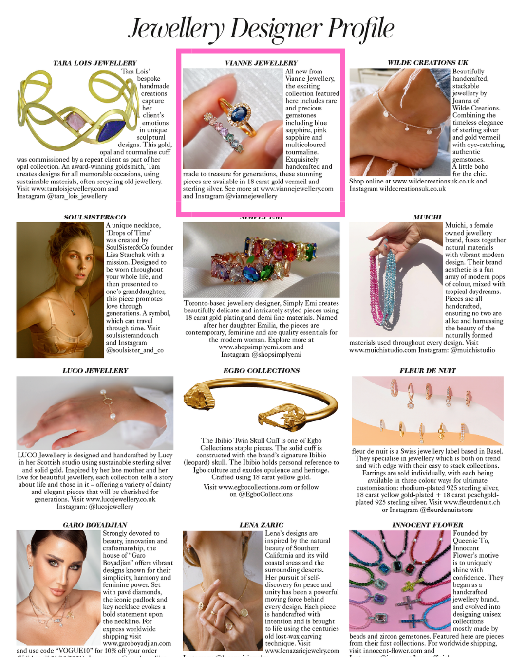 **As seen in BRITISH VOGUE Magazine 'Jewellery Designer Profile' - October 2021 issue**