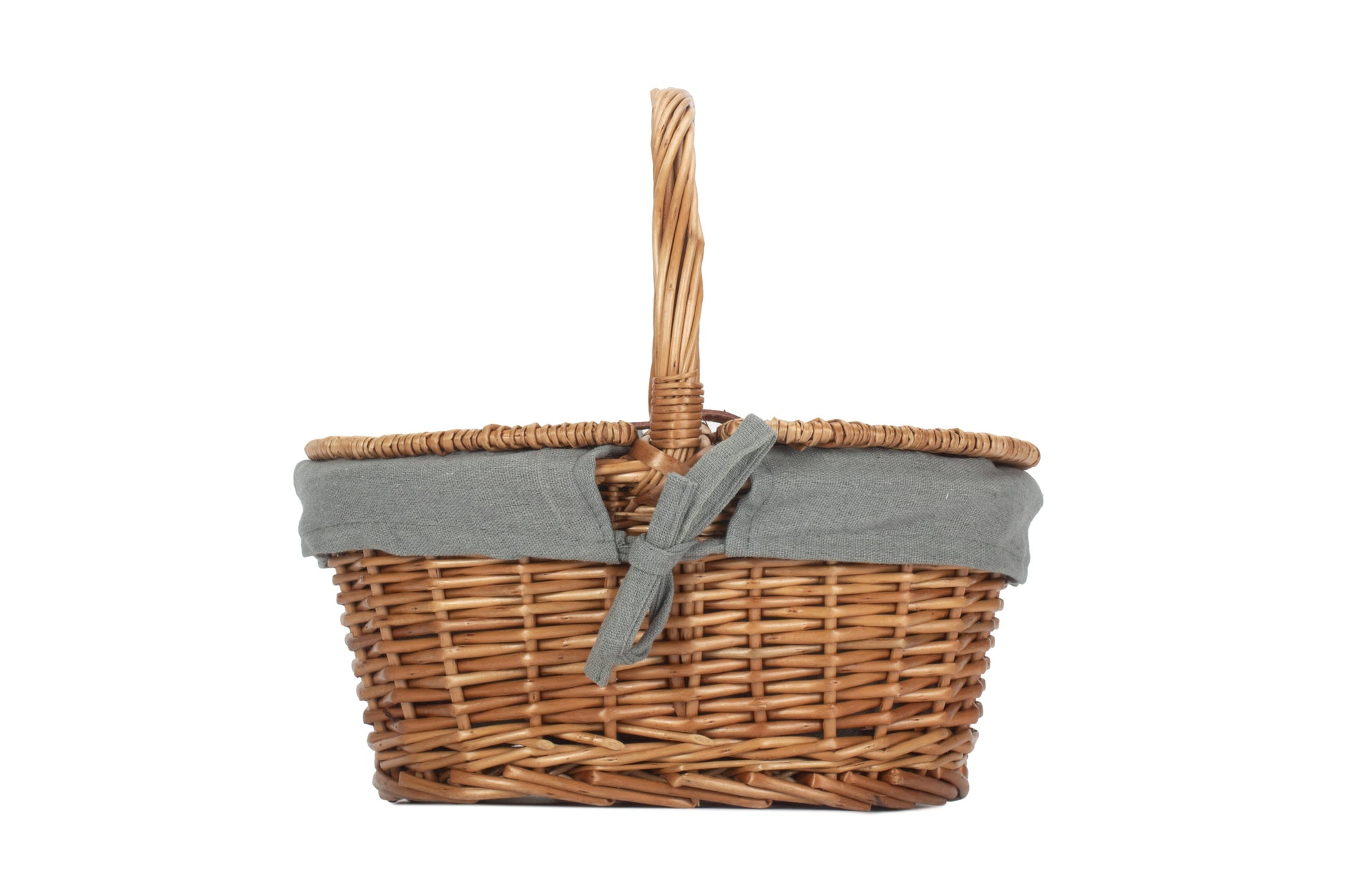 Childs Light Steamed Finish Oval Picnic Basket With Grey Sage Lining