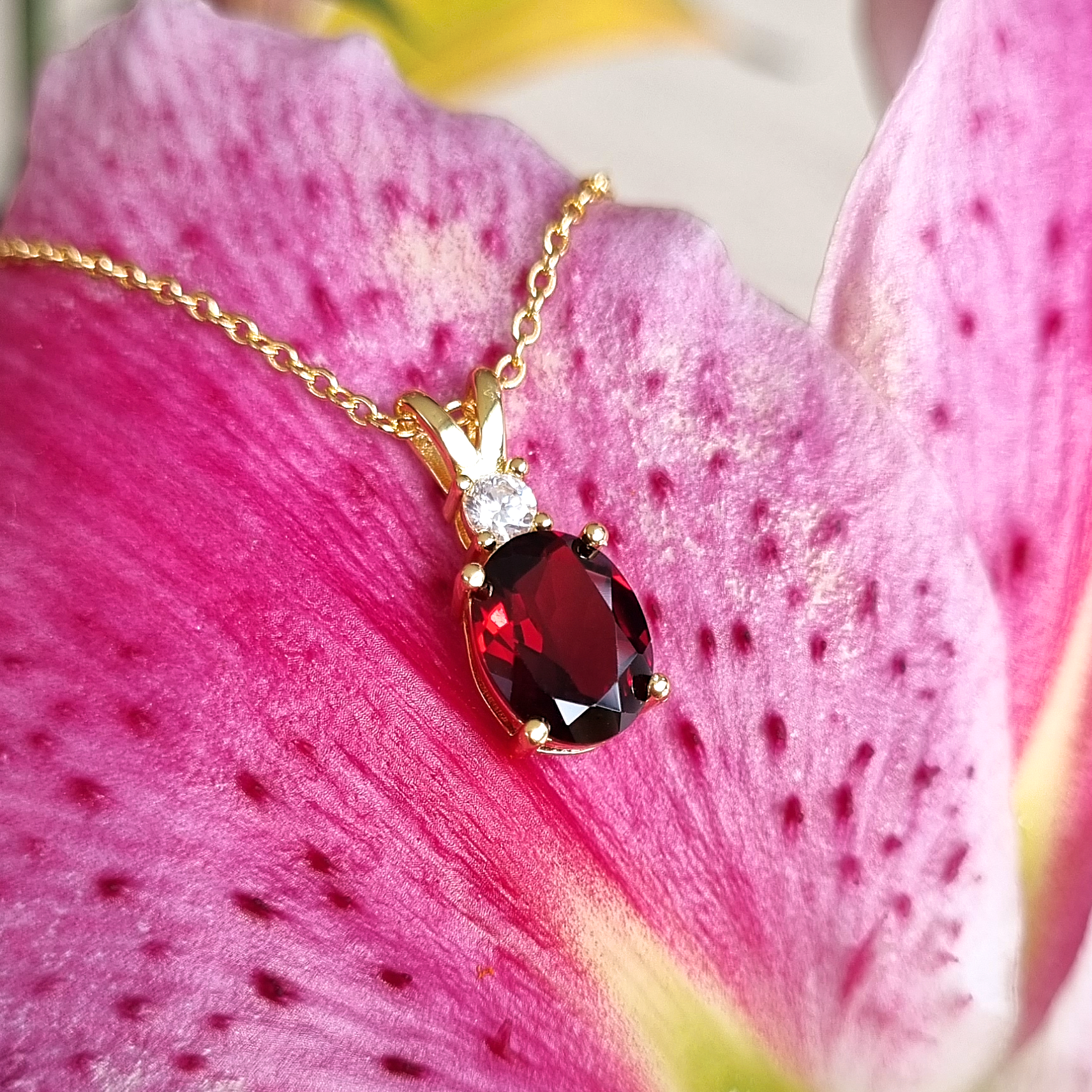 - Natural garnet oval cut 9x7mm (1.75 carats) - premium quality, eye clean, no inclusions