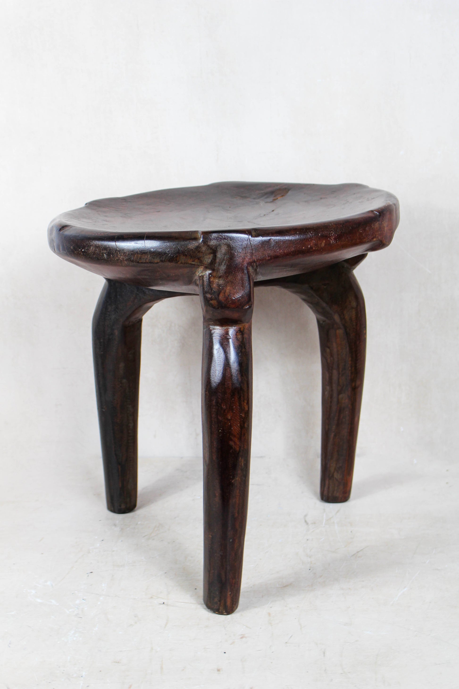 Historical Details: The seat is the most important piece of furniture in Africa. It serves as a social insignia because every person is entitled to a type of seat that corresponds to their social rank. These Hehe stools are generally 3 or 4 legged with a simple round polished top.
