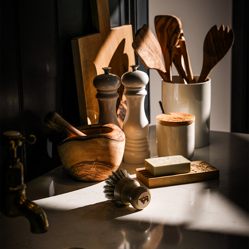 Bring a touch of rustic elegance to your kitchen with our Bamboo Pot Brush showcasing the majestic Highland Cow Full design. Crafted from sustainable materials, this brush is designed to effectively clean your pots and pans while adding a countryside-inspired charm to your cleaning routine.