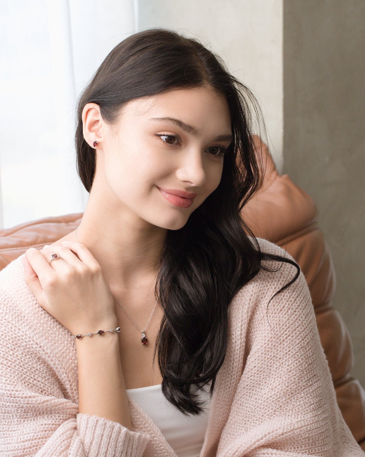 Mini Set 2 - Garnet Jewellery Set in Sterling Silver by Vianne Jewellery