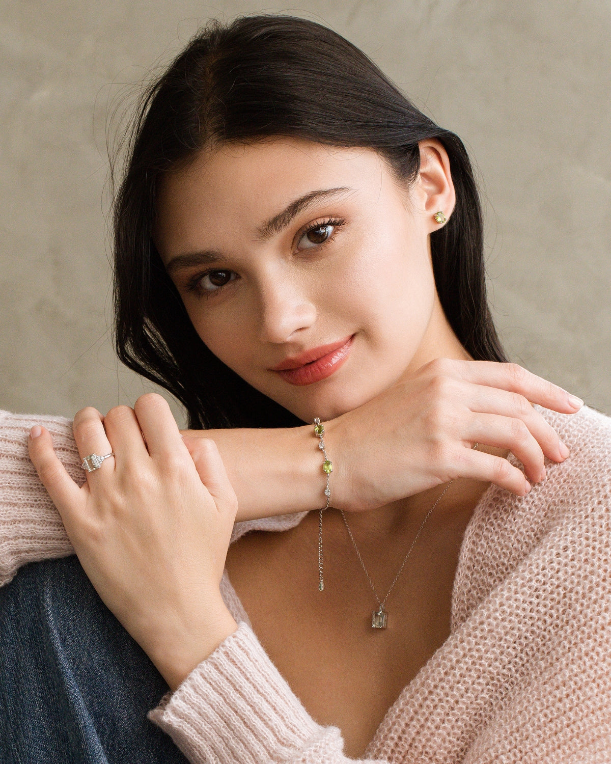 The perfect starter set for green gemstone lovers, this jewellery set comprises a bracelet and a pair of matching stud earrings. Each piece has been meticulously handcrafted with peridot - the vivid green gemstone. The bracelet is also adorned with sparkly simulated diamonds. This jewellery set will make the perfect Christmas gift, birthday gift and anniversary gift for your loved ones.