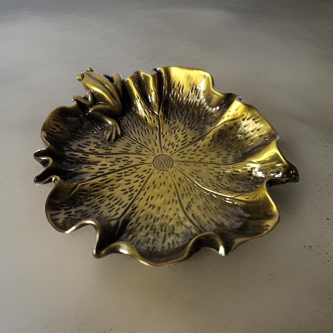 Complement with a little frog-themed plate to rest your candle on (measures approx. 9cm across).