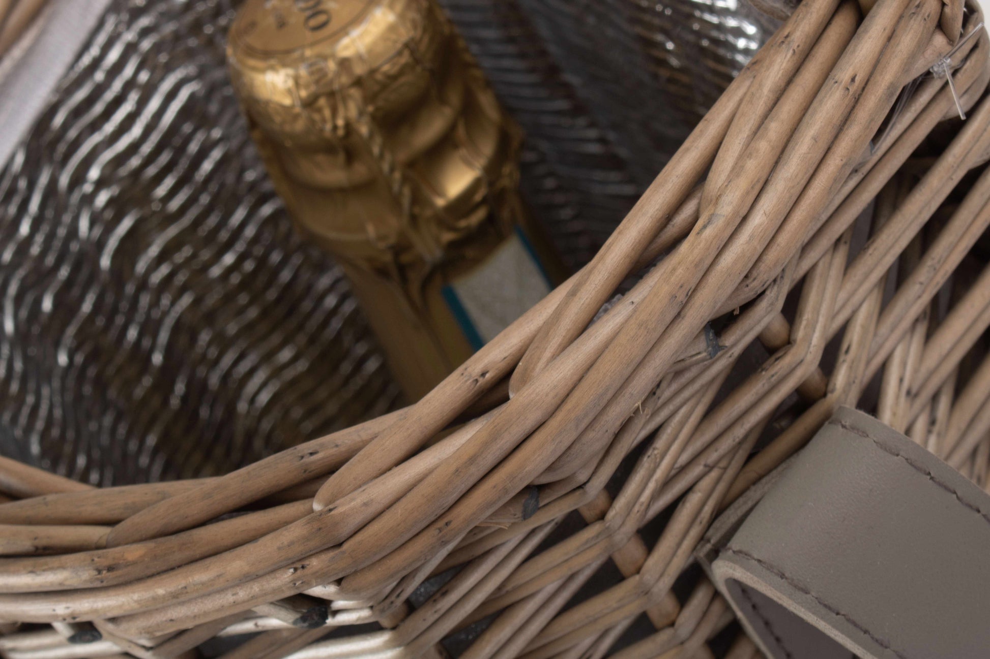 Comes with chiller lining, Bottle opener and Champagne Flutes