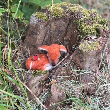 Bring to life this beautiful Sleepy Fawn! Such a gorgeous sleepy fawn with dappled spots taking a moment to rest. There is a beautiful tiny robin watching over the fawn as it sleeps. You will find great joy creating this sustainable 3D needle felting kit.