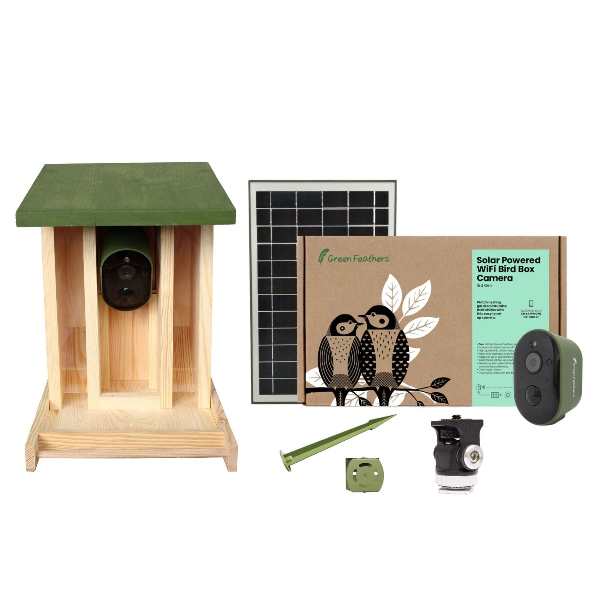 Green Feathers Solar Powered WiFi Camera Wooden Bird Feeder Kit