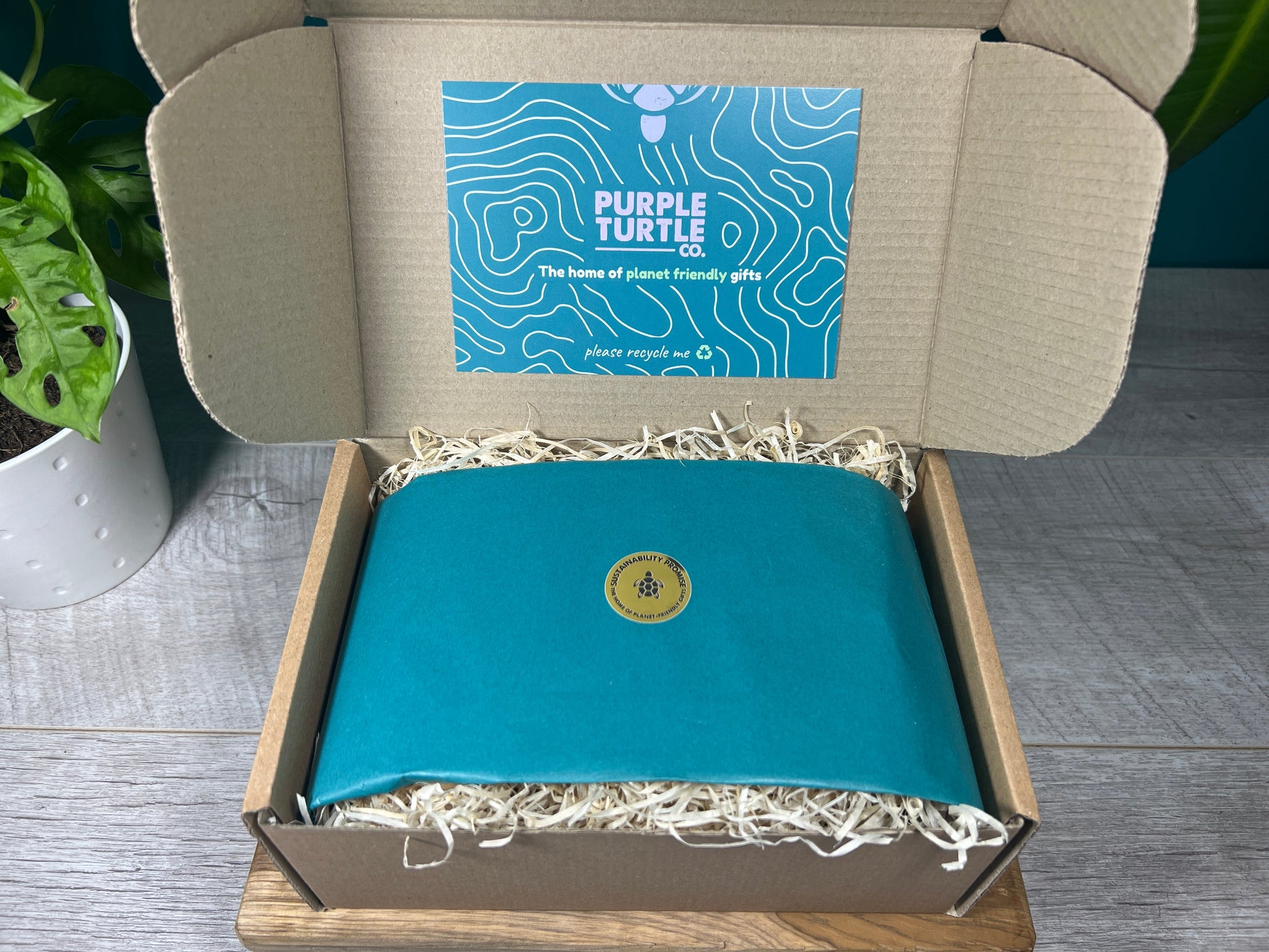 Send a beautifully handcrafted candle, made with our planet in mind. Made from sustainable soy wax, using a luxury glass holder, that can be washed and reused for many different purposes once the candle is finished. The scent is Lavender and comes carefully hand gift-wrapped ready to gift in one of our iconic Purple Turtle Co gift boxes.