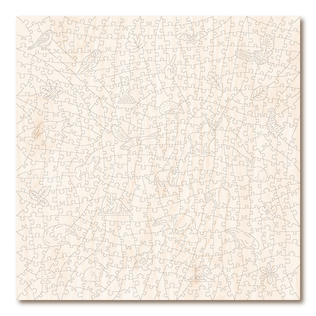 Introducing the Summer Badgers wooden jigsaw, a stunning puzzle with 500 whimsical and irregular shaped pieces. Immerse yourself in the moonlit field scene, adorned with badgers, wildflowers, and an enchanting owl under the full moon. Crafted from high-quality 5mm Linden plywood, this puzzle is both beautiful and challenging. Perfect for puzzle enthusiasts and nature lovers alike.