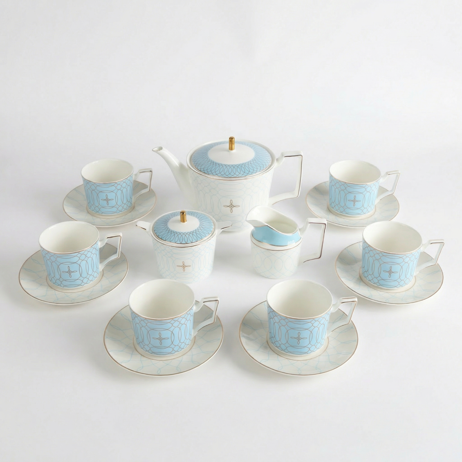 The Regent Blue Gold Bone China Tea Set by KitchBoom