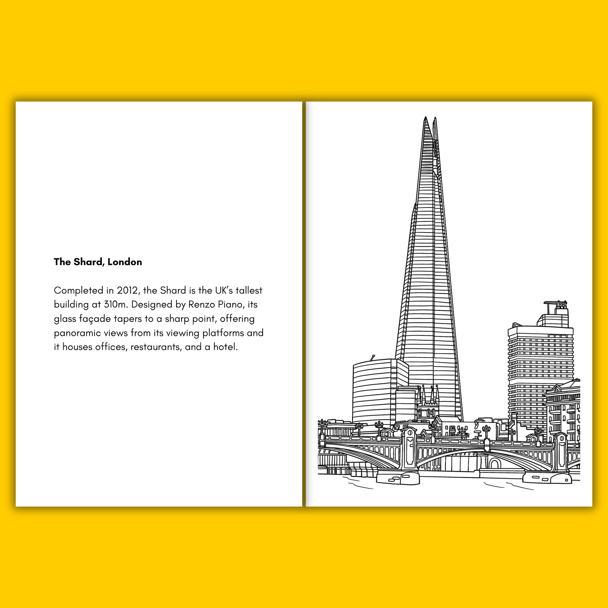 Each illustration is paired with a short description, offering just enough history and context to spark your imagination without getting in the way of your colouring flow.