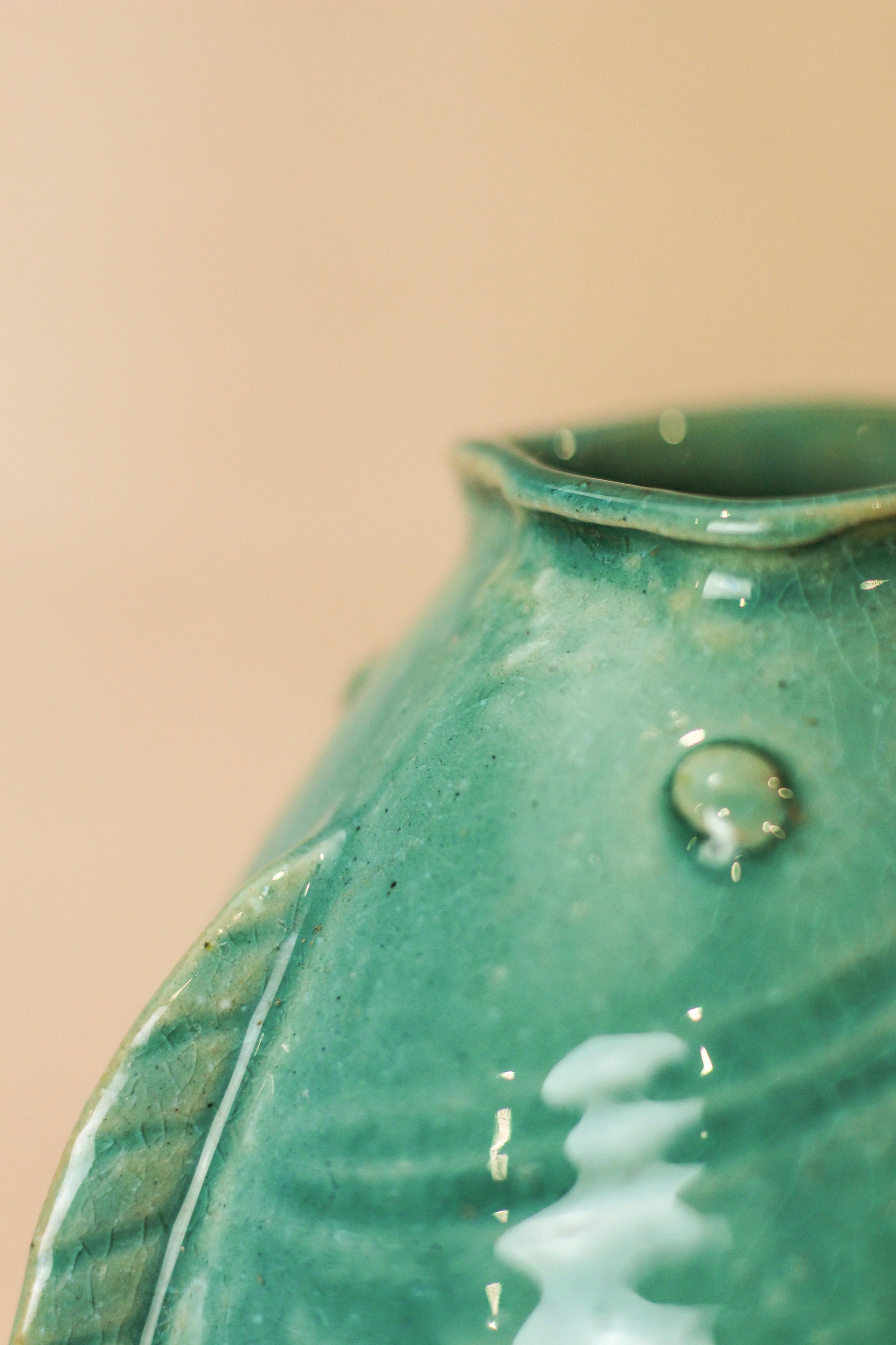 - Distinctive Design: Formed of two joined fish with turquoise glaze and intricate scales that brings wonderful texture, this vase serves as both a decorative art piece and a functional vessel.